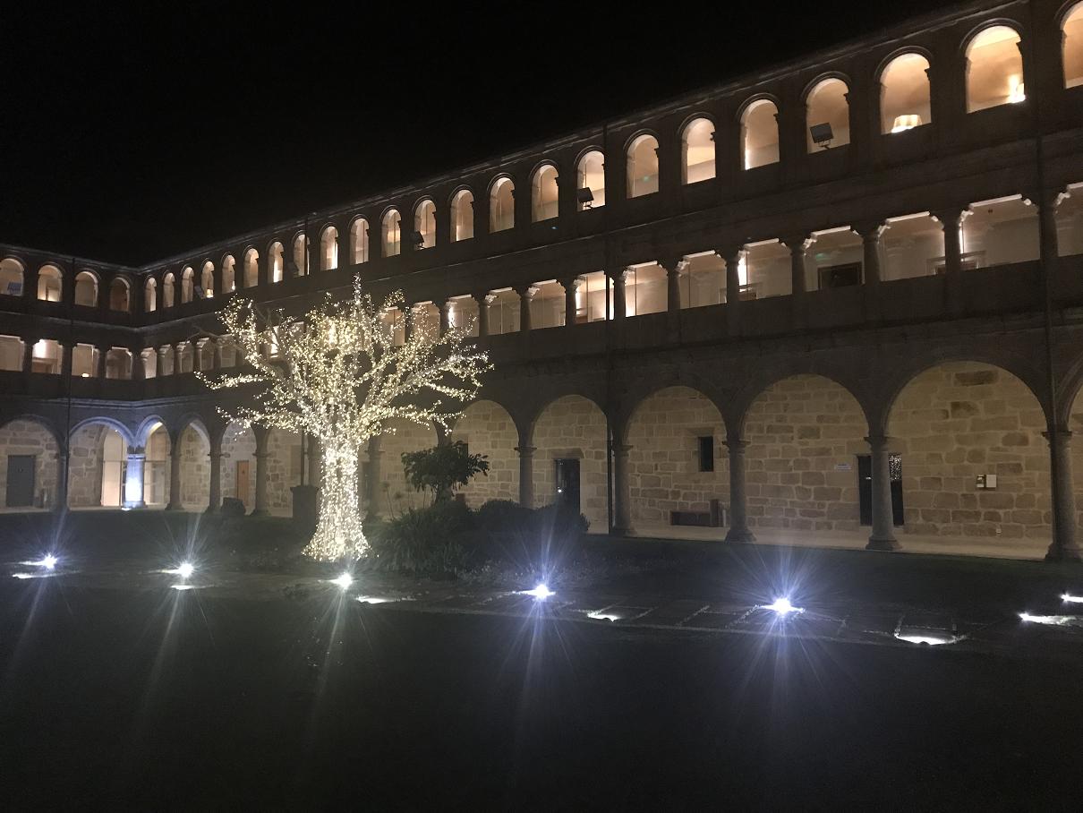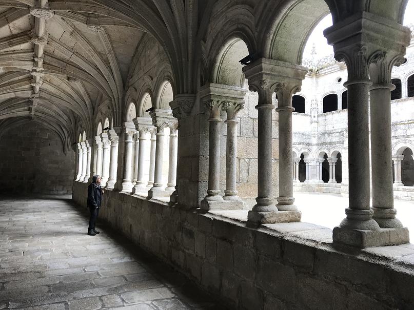 Ce matin à 7H30 avant de partir pour Santiago je suis allé faire une séance de Taichi dans le cloître de l'évêque. Au centre du cloître. Dans une demi obscurité jusqu'au jour naissant, dans le silence ponctué de quelques chants d'oiseaux, je me sens bien. Impression fugitive des moines interrogatifs qui me regardent. L'énergie est là, mais il fait un peu frais pour bien la ressentir.