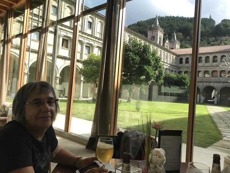 Etonnant de déambuler de cloître en cloître et de retrouver sa chambre avec un ascenseur. Instant détente après une petite balade de quelques km autour du monastère.