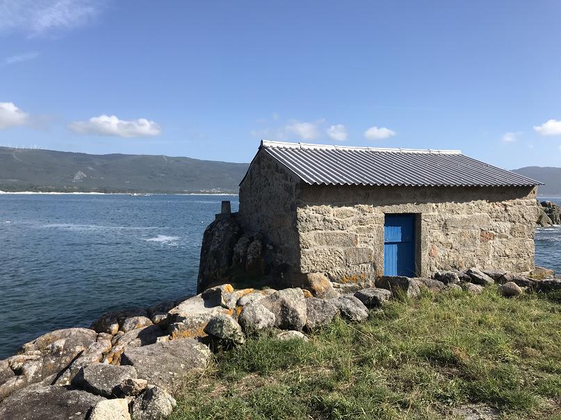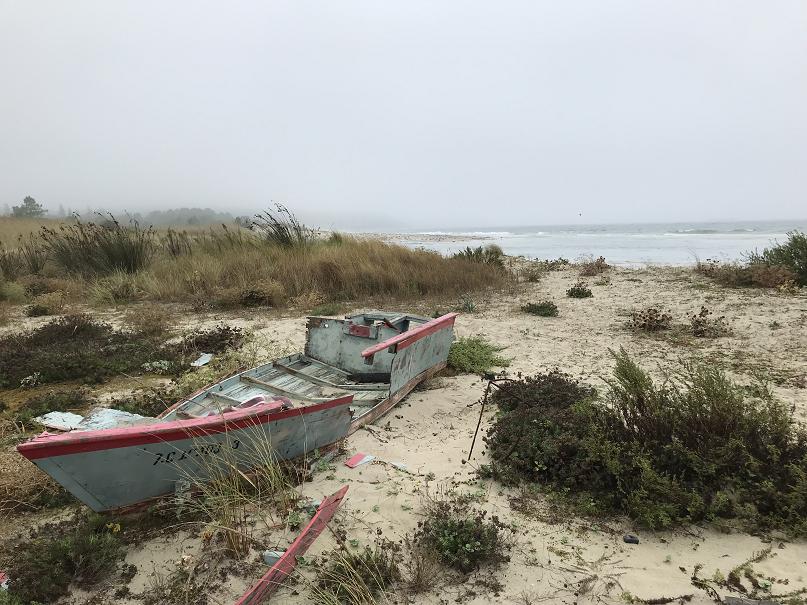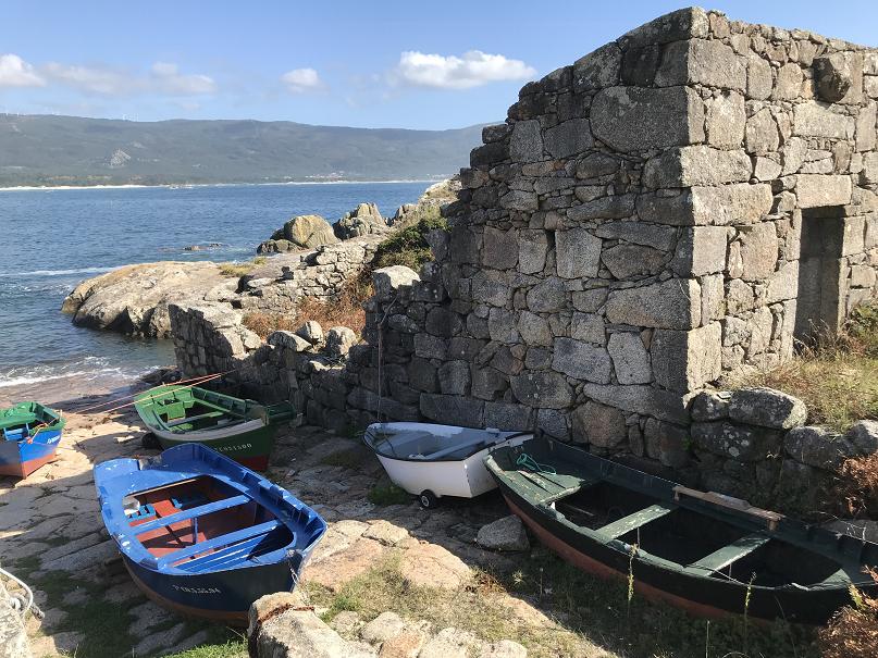Josy a retrouvé la barque du Pêcheur en bon état malgré 20 siècles sur la plage. Le village de Fisterra.