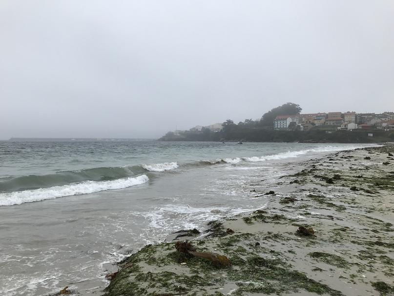 ... et puis n'y tenant plus vers 14H on se permet un bon petit restau de poissons suivi d'une balade vivifiante et embruinée sur la plage de Fisterra. On croise encore quelques pélerins, les jusquauboutistes!