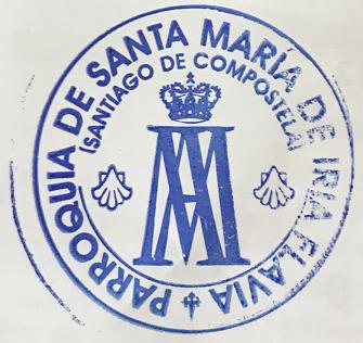 Arrêt à l'église de Iria Flavia, cet endroit où le Jacquot sans tête a soit disant débarqué. Voici le tampon ultime du voyage du pélerin. A chaque étape le pélerin fait valider son étape par un tampon sur sa Crédential. Et pour avoir le dernier tampon, celui de Santiago, le pélerin doit avoir marché au moins 100km. Cet ultime tampon est facultatif.