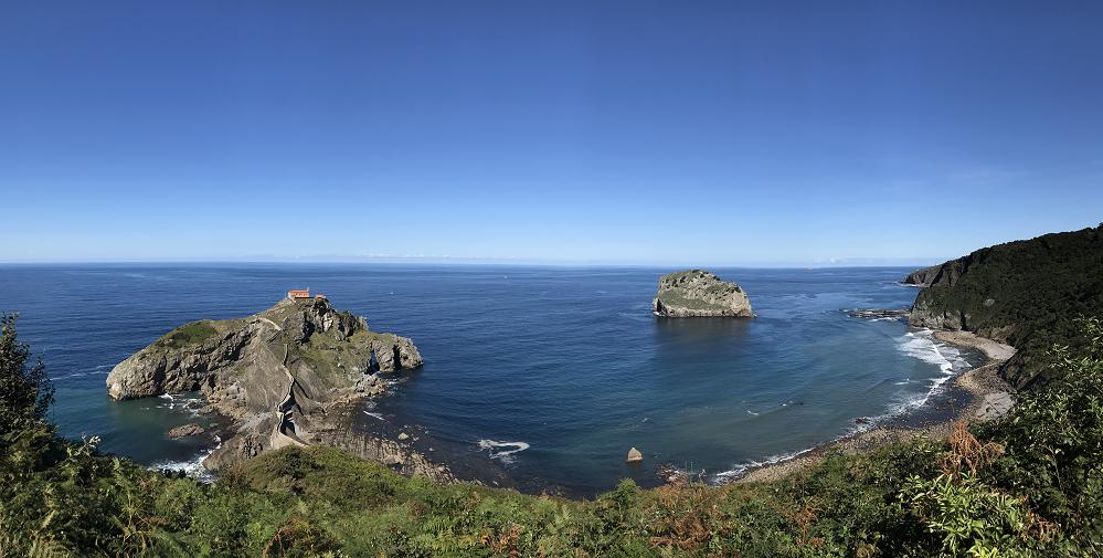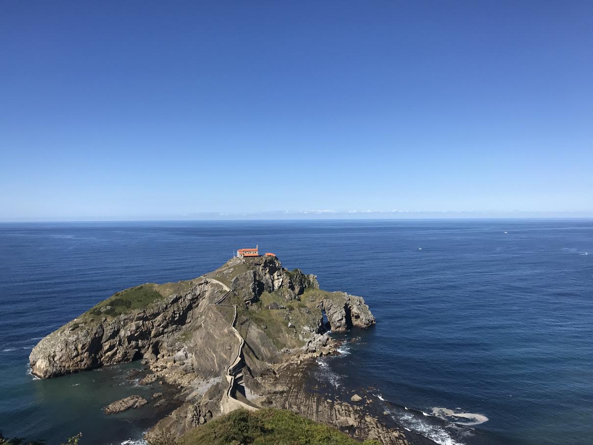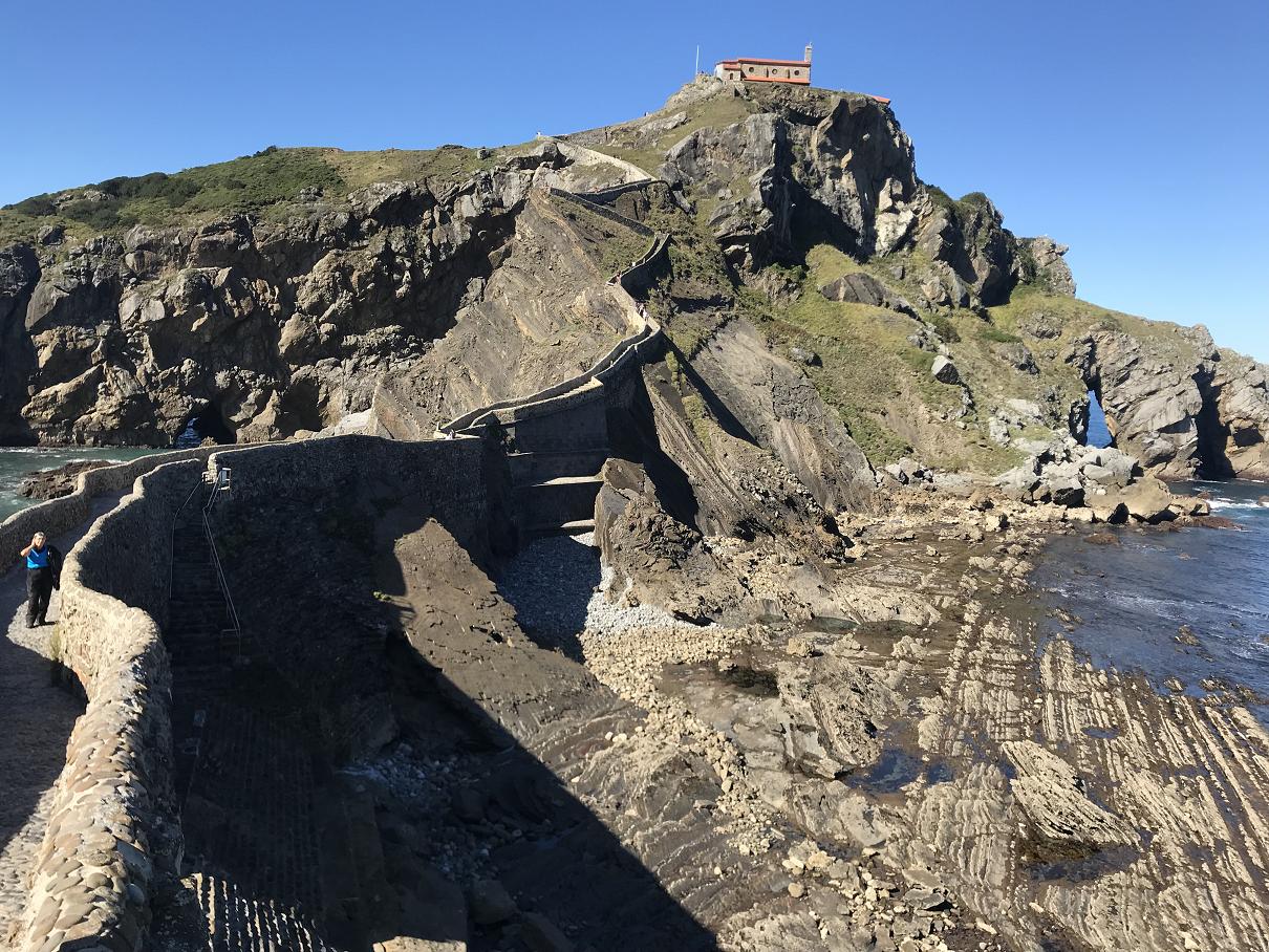 Après une interminable traversée de Santander et Bilbao on arrive enfin à l'ermitage San Juan de Gaztelugatxe sur la côte basque ou a été tourné la septième saison de Game of Thrones. Descendre de la falaise et monter les 350 marches de l'escalier en pantalon, bottes de moto et veste sur l'épaule... et retour. Ce fut le chemin de croix de la journée. L'appli Santé de mon portable indique 69 étages en fin de journée.