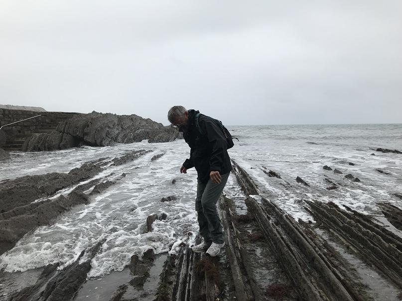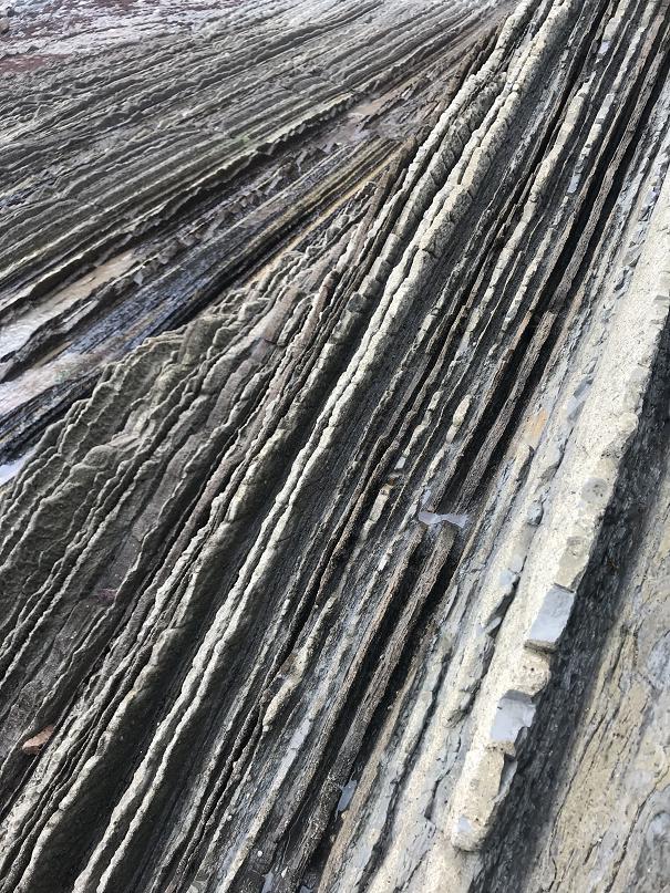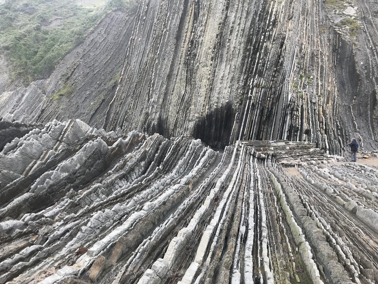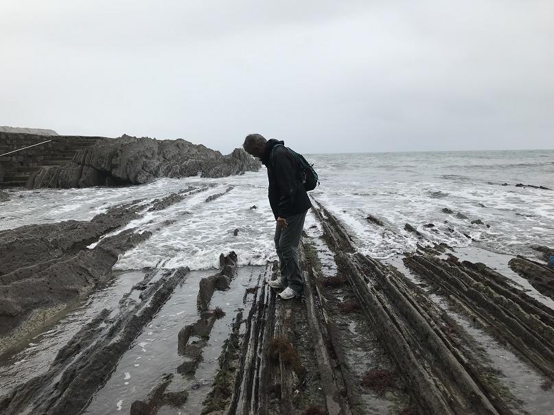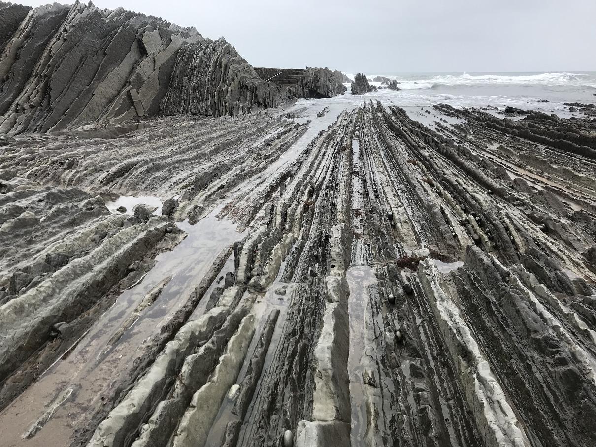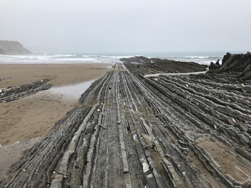 Le lendemain sous un bon petit crachin basque, le flysch sur la plage d'itzurun à Zumaïa.
