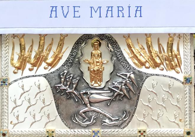 Dans la fresque Don Pelayo brandit son épée pour pourfendre les Maures.