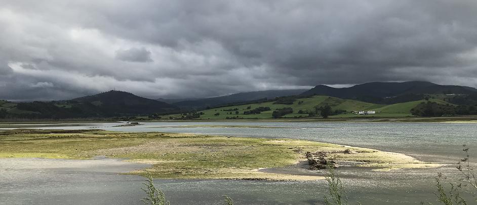 On peut remarquer à marée basse sur cette côte des sédiments marins plissés, le flysch (ici, à droite sur la photo). C'est la raison pour laquelle nous faisons une étape à Zumaïa.