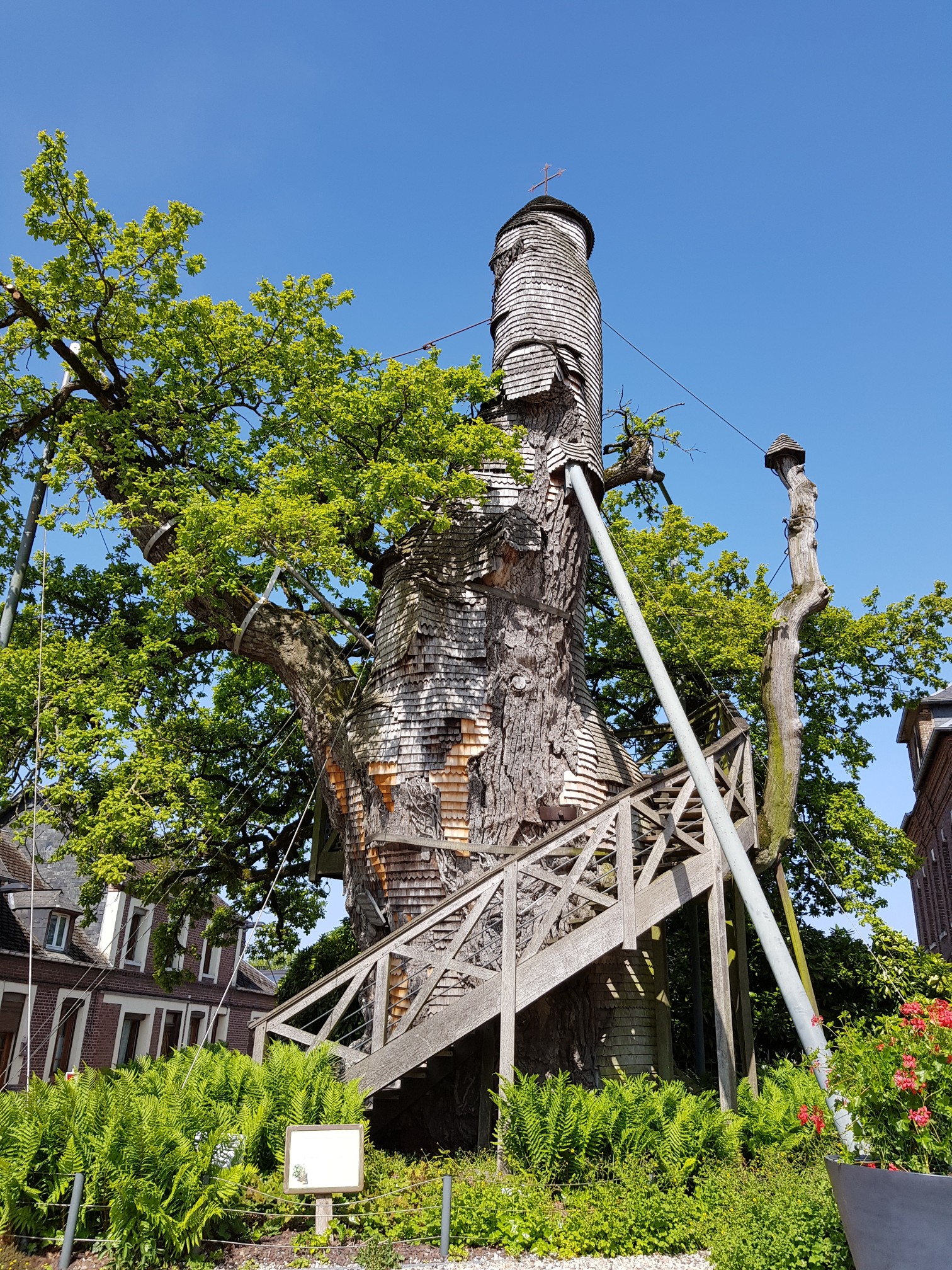 Etape à Allouville Bellefosse en pays de Caux pour voir le vieux chêne transformé en deux chapelles superposées. Il daterait de l'époque de Charlemagne.