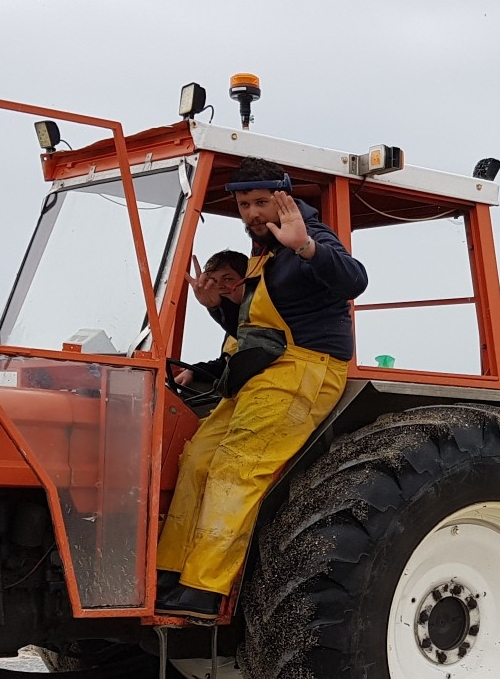 Pourquoi toujours montrer des paysages. Dans la baie du Mont Saint Michel, le salut des ostréiculteurs aux motards.