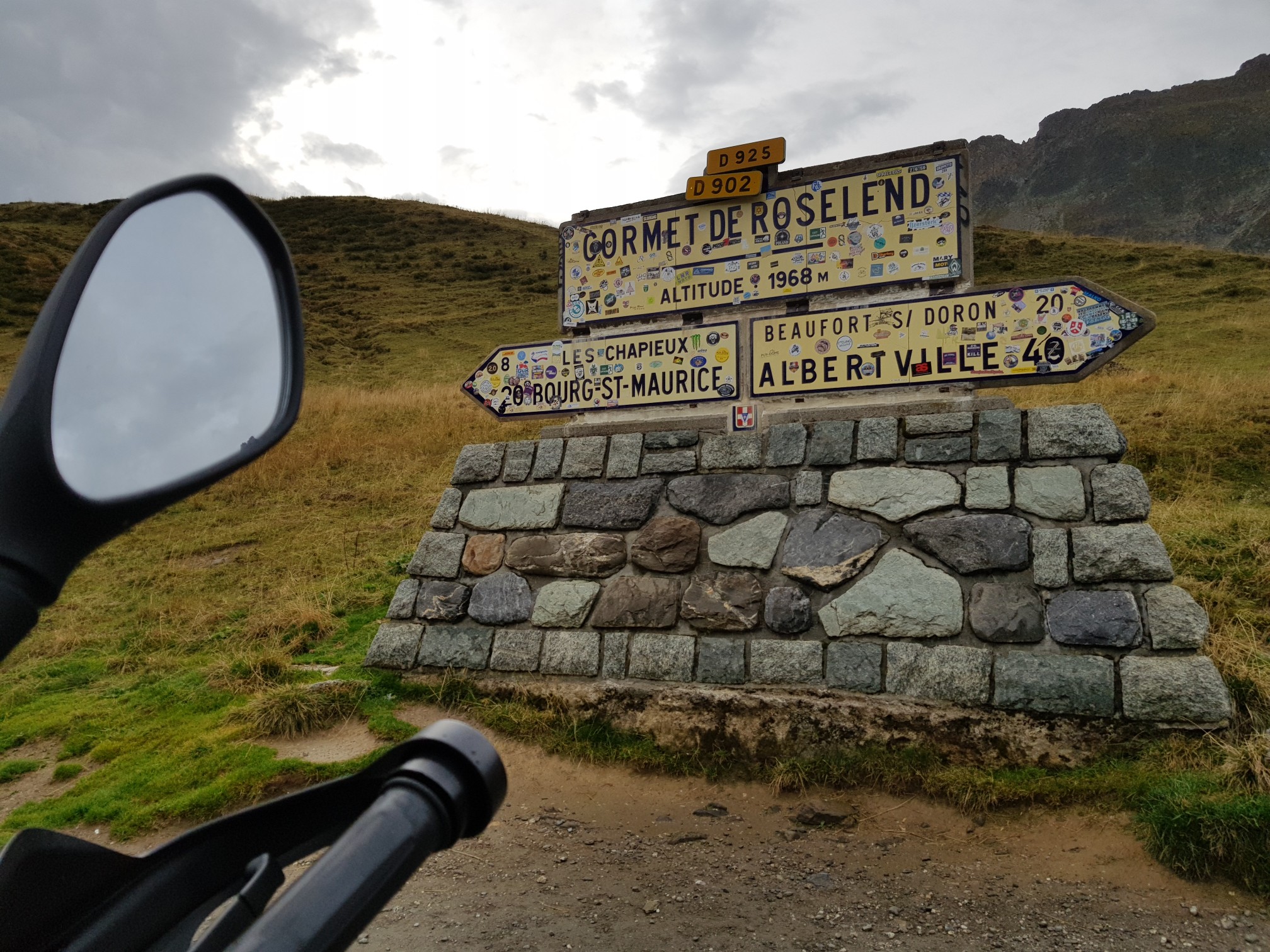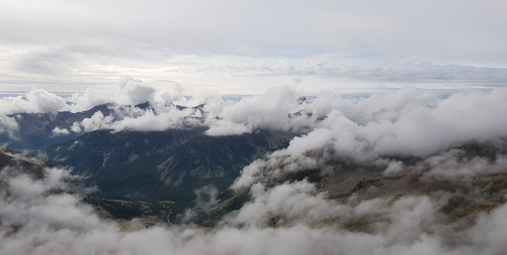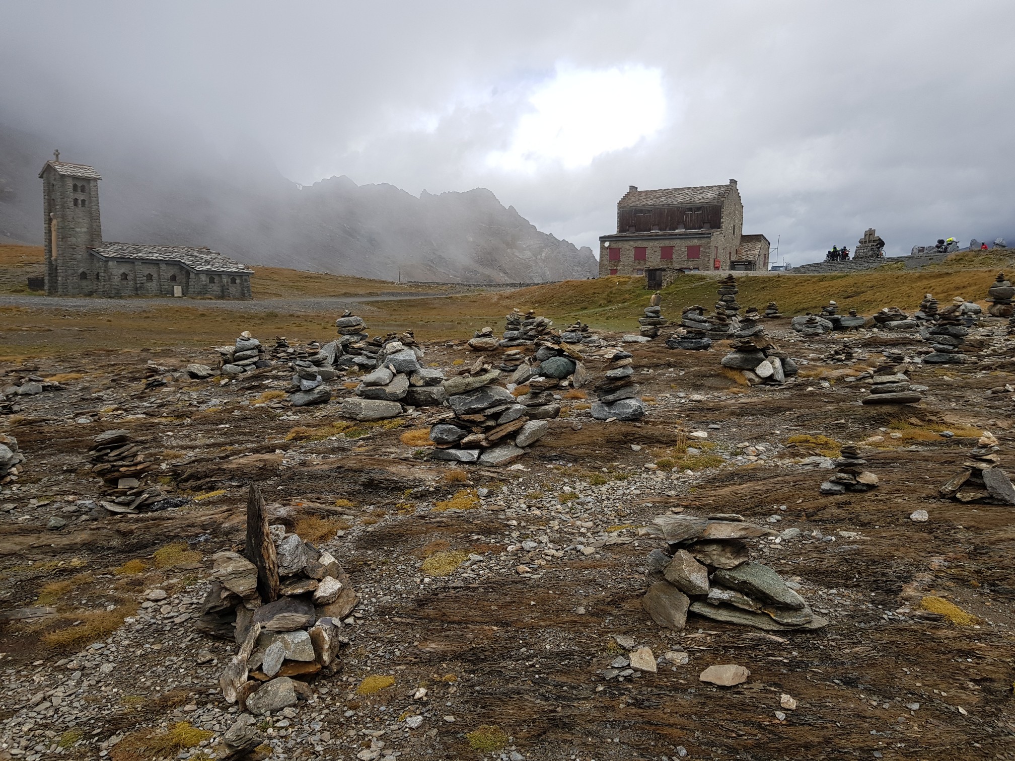 Quatre degrés en arrivant au col de la Bonnette dans les nuages à 2800m d'altitude.