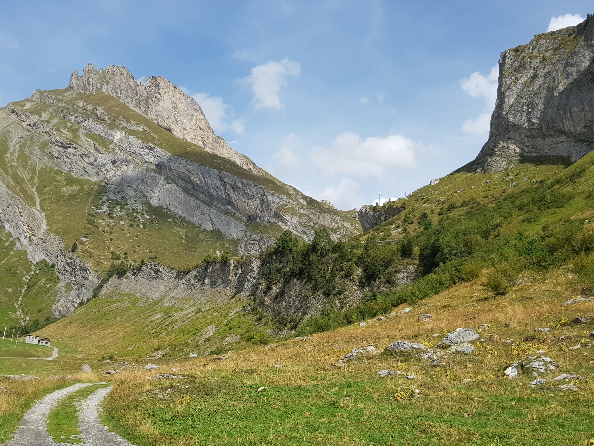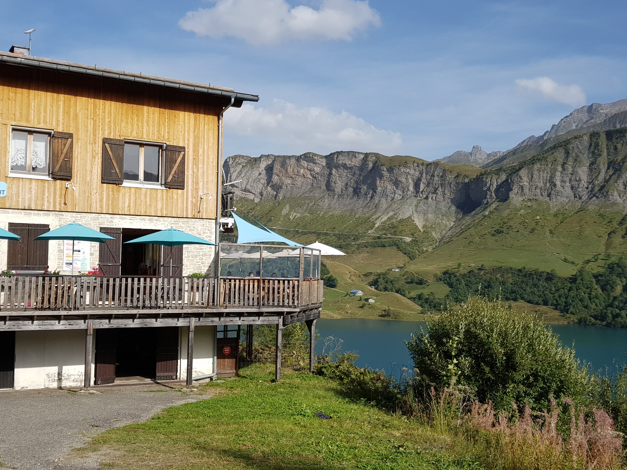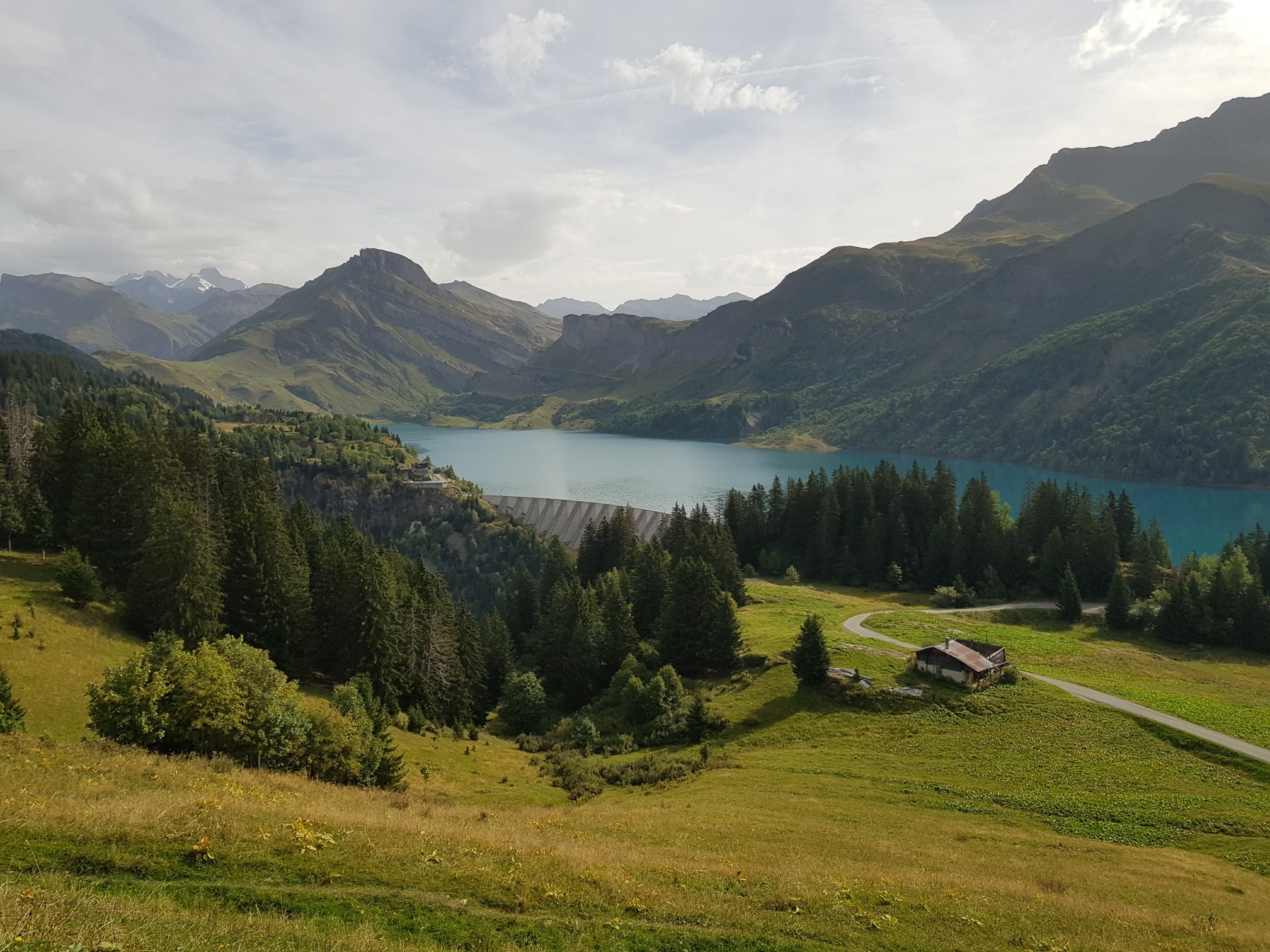 Parcourir les Alpes c'est évoluer dans un paysage de carte postale, ça donne envie de revenir pour randonner. Alors dans le désordre : col de la Colombière, col des Aravis, col des Saisies pour finir par le col du Meraillet à 1600m où nous attend le HR Chalet de Roselend au bord du lac de Roselend. Aujourd'hui la balade fut cool, on termine à 14h30. Demain rando autour du lac si la météo le permet