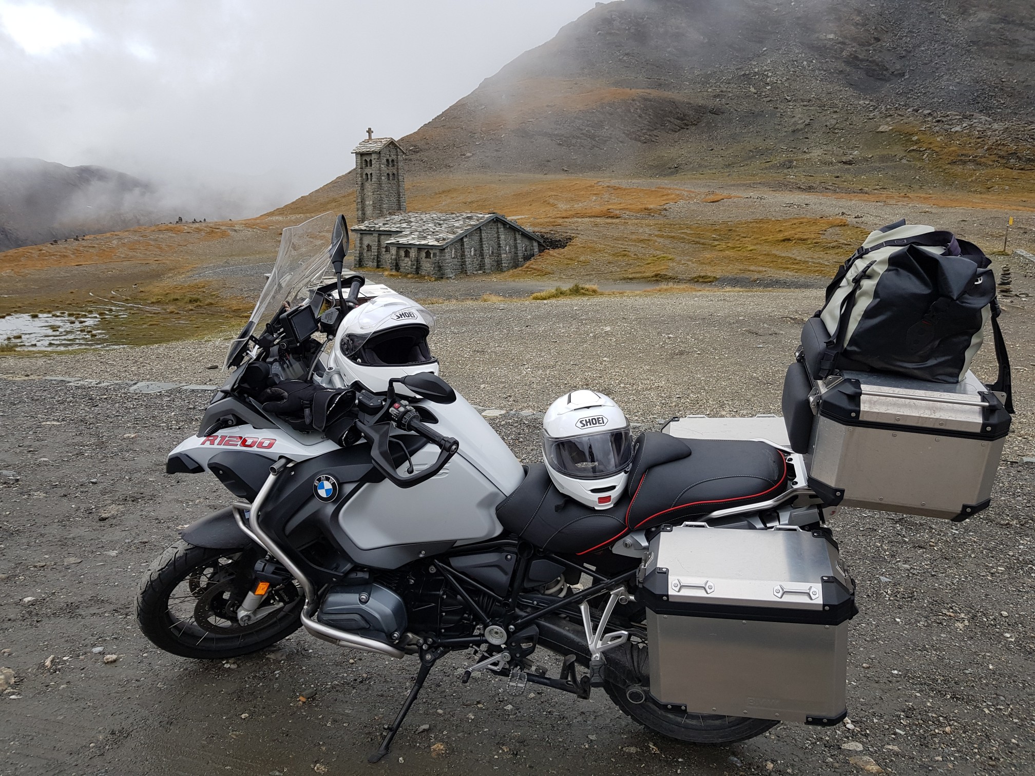 Les tarmots du col d'iseran, même pas froid. En descendant du col, une marmotte suicidaire traverse la route juste devant la moto. Un pari qu'elle a du faire avec ses copines.