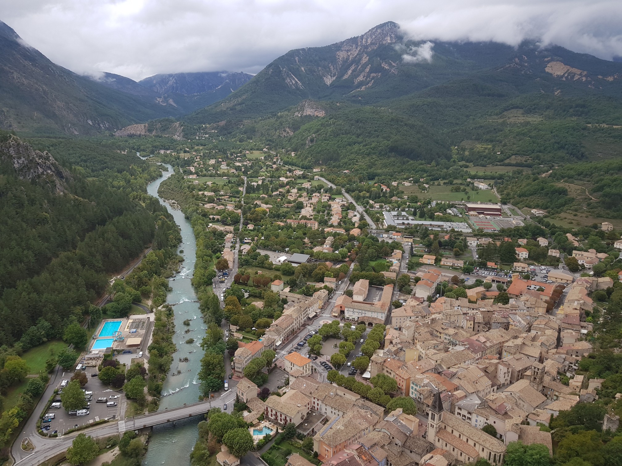 La ville de Castellane et le début des gorges du Verdon, vue depuis Notre Dame du Roc, chapelle qui domine Castellane.