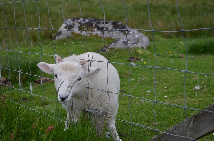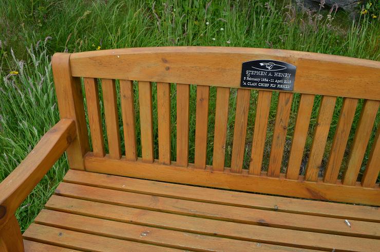 L'ile Harris est connue pour son tweed de qualité. Traditionnellement les moutons n'étaient pas tondus, mais leur laine était arrachée. Etonnant, non? Ben pas tant que ça, si on attend le bon moment la laine se détache toute seule. On voit de temps en temps des moutons avec des bouts de laine qui pendent. Cette brebis s'est coincée les cornes dans le grillage et a du mal à en ressortir. Autre particularité en Ecosse, on voit souvent des bancs publics avec une inscription en mémoire d'une personne disparue, comme celle-ci "Stephen Henry 5/2/1954 11/4/2013 - un chef de clan des pêcheurs à la mouche"