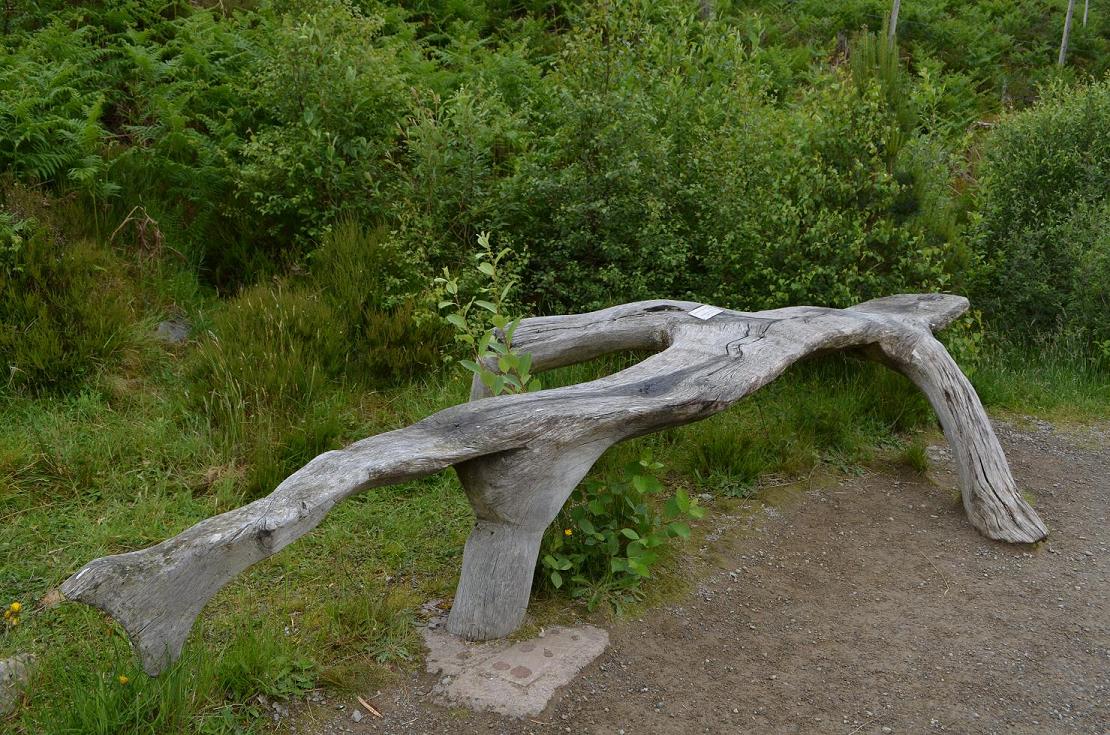 Le soir on doit retrouver un B&B ou curieusement notre hotesse à Ullapool s'appelle Charlotte MacDonald. Encore une descendante du fameux clan. On a donc toute la journée pour se balader, on commence par la visite des gorges de Corrieshalloch. Ici un banc original offert en mémoire de ...