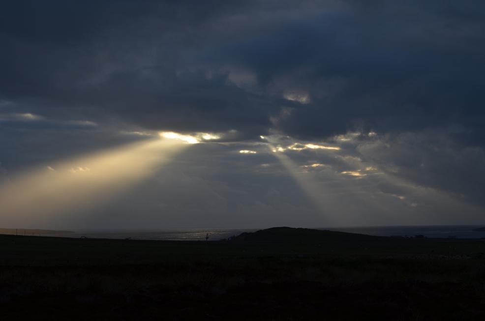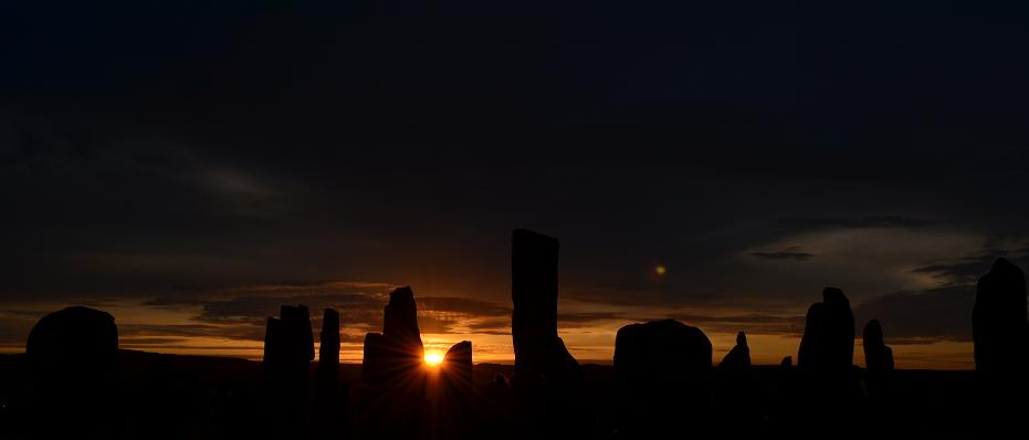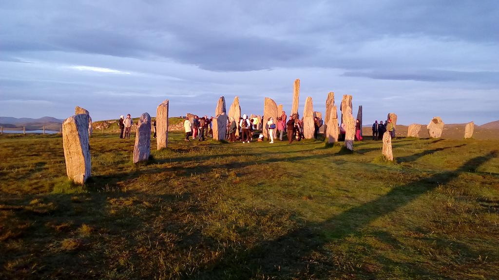 Ce matin lever 4H pour assister au lever de soleil du solstice d'été sur les pierres levées de Callanish. C'est pour cet évenement que nous sommes venus ici sur cette ile pour essayer de capter les énergies. Ce site serait plus ancien que Stonehenge, environ 3000 ans avant Jean-Claude. On s'attendait à voir quelques personnes, mais ce fut au moins 100 personnes dont pas mal d'allumés baba cool et évidemment des chinois venus en bus (y en a partout!). Et le soleil fut au rendez-vous, quelle chance!