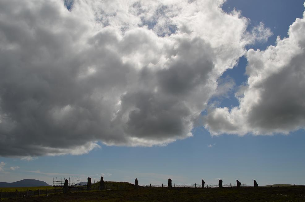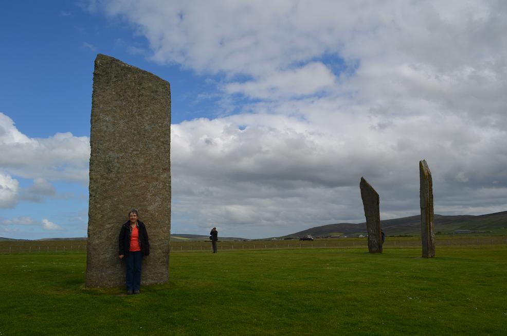 Visite du site archéologique, le cercle de pierre levées Ring of Brodgar, large de 103m. Et des Stones of Stenness qui ont failli disparaitre en 1814. Un paysan dérangé par les visiteurs avait commencé à les faire sauter à la dynamite!