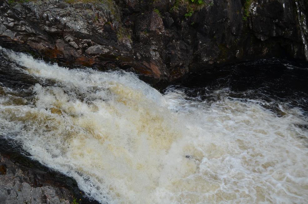 Jolie chute d'eau de Falls of Shin, endroit réputé pour le passage des saumons dans les cascades. On y passe deux heures à jouer les paparazzi de saumons, on en voit quelques uns qui remontent le courant. Mais alors pour avoir une photo saumonée, bernique! Sur celle-ci peut-être (sur 492 photos), cherchez bien!