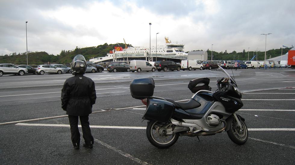 Lever 5H pour prendre le ferry à Stornoway et ce matin le vent a forci. On a 25 km à faire, Josy tient bon sur la moto un peu malmenée dans ces rafales. Je suis obligé de pencher régulièrement la moto pour compenser. Comme à l'aller de Uig à Tarbert nous sommes la seule moto à embarquer. Alors pourquoi les derniers?