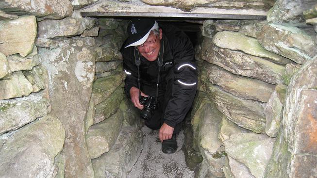 Visite du site archéologique, le Grey Cairn of Camster. Chambres funéraires qui datent de 5000 ans av JC. Passage difficile pour entrer et ressortir du cairn. On raconte qu'une touriste française corpulente resta coincée à l'intérieur en 1880 et qu'il fallut agrandir le toit et la ressortir par une échelle.