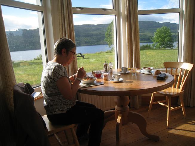 Frigorifiés, on se précipite au B&B à Dornoch pour se faufiler sous la couette. Il est 14H30. Accueil très impersonnel pas chaleureux pour un sou. On repart le lendemain sans voir notre hôtesse.