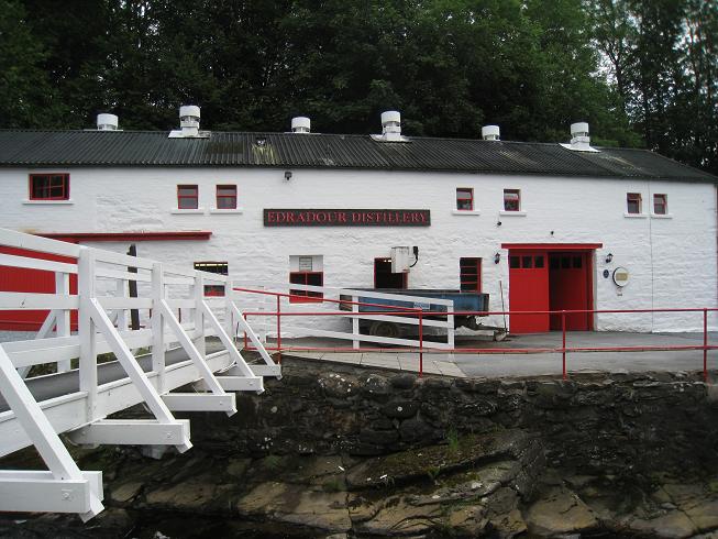 Nathalie nous indique une petite balade dans la campagne et la forêt pour rejoindre la plus petite distillerie d'Ecosse : Edradour. On passe à travers des champs de céréales (à whisky?). Une petite visite et pour finir la dégustation, Hips!