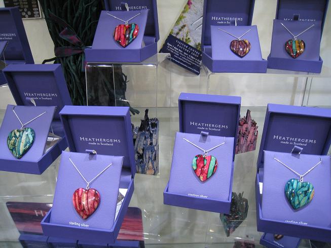 Heathergems, la fabrique de bijous en bois à partir de bruyères lavées, colorées, compressées, et usinées. Etonnant.