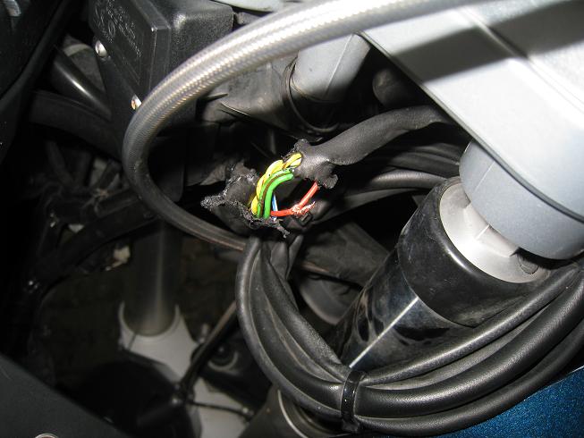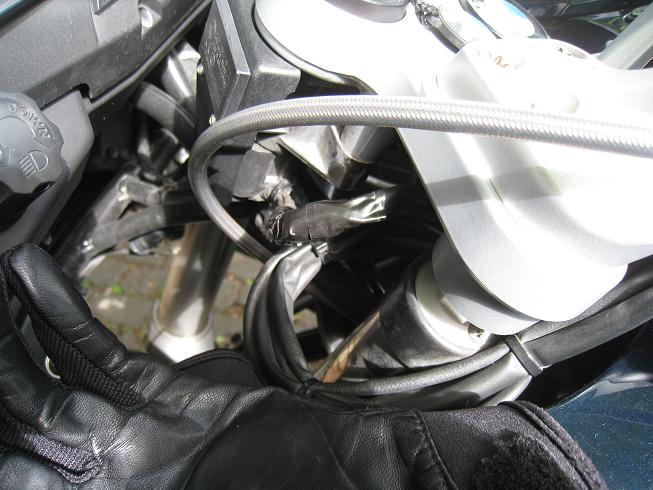 Le lendemain au moment de quitter Edimbourg, la moto ne démarre pas! Damned! Rapide constatation, un malendrin a essayé de la chouraver, un des fils de l'antivol est coupé! Pas de panique! Réparation de fortune avec une épissure et du barnadaire. Une réparation de "PRO" qui fait que la moto démarre, c'est le principal. "Du PRO-visoire" comme dit Josy...