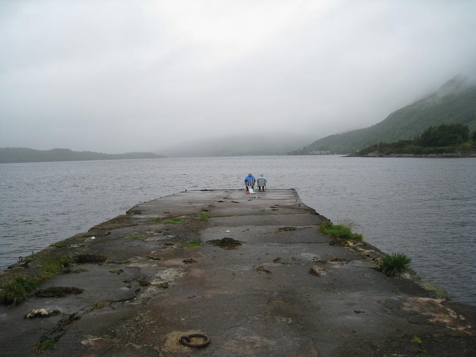 Un couple d'allemands se sont installĂ©s au bout du bout. Lui pĂȘche, elle ? Ambiance bruine et brouillard.