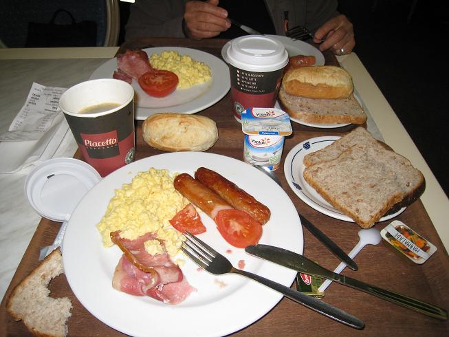 Dans le ferry à 8H premier petit dej irlandais, va falloir s'y faire. Mais là, j'ai zappé les haricots.