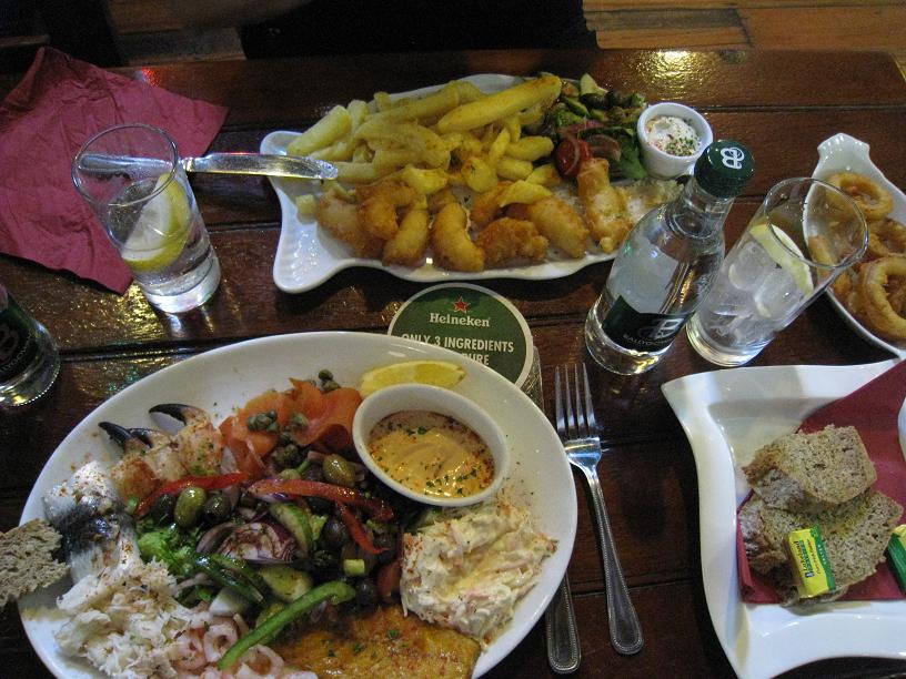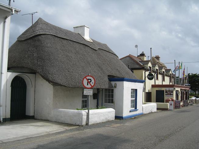 Maisons au toit de chaume à coté du pub ou on aprécie un premier repas de seafood!