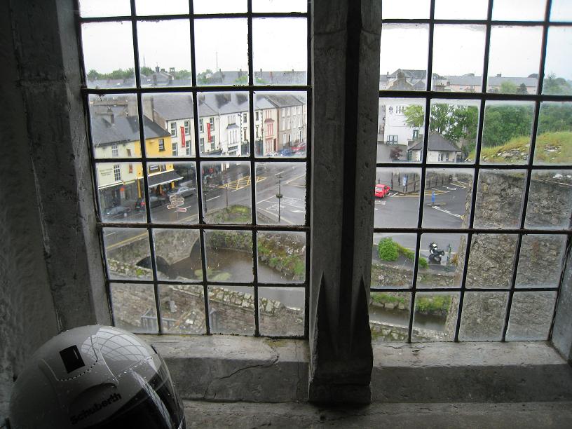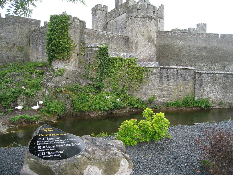Le chateau de Cahir ou eu lieu des tournages de films (Excalibur, la série des Tudors), le chatelain a laissé son haume au bord d'une fenêtre (cherchez le cheval!)