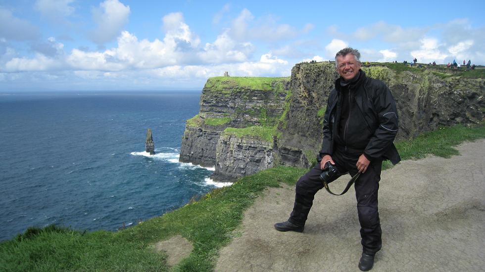 La pluie cesse et la route - magnifique billard - serpente entre les murets de pierre. Arrêt pour revoir les Cliffs of Moher (214m de haut), l'attraction naturelle la plus visitée en Irlande, avec vue sur les iles d'Aran. Mais le lieu a bien changé, les chemins du litoral ont laissé la place au béton et le parking est payant pour accuellir les miliers de touristes.