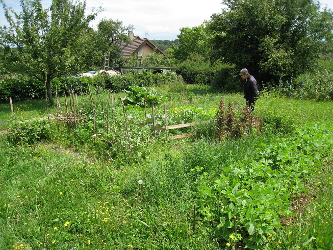 La première chose qu'on fait en arrivant est d'aller voir le jardin... Mais ou sont les légumes dans cette friche ? Bon, y a du boulot !