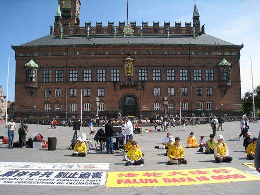 Plus tard nous passons devant la mairie ou des militants chinois demandent la désintégration du parti communiste chinois et le départ du président, et dénoncent la répression des pratiquants du "Falun Dafa", variante du "Qi Qong" (que Josy pratique...).