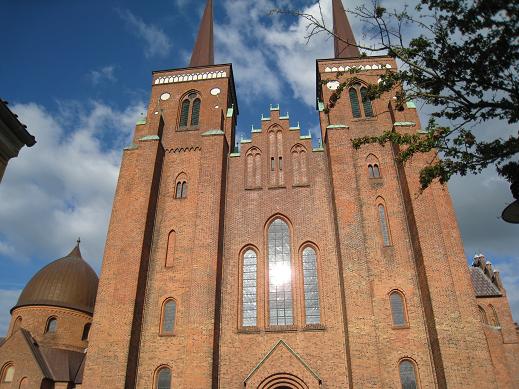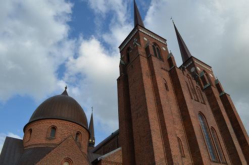 Roskilde capitale Danoise du 10e au 15e siècle, les monarques étaient couronnés dans la splendide cathédrale (Domkirke), immense église en brique rouge qui domine la ville de ses 2 grandes tours