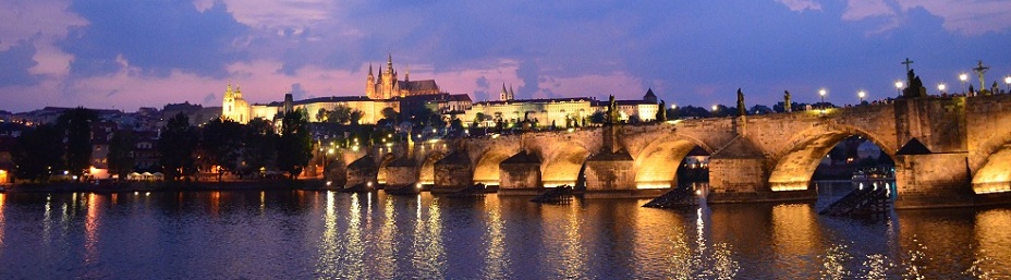 Le pont Charles de jour et de nuit avec en arrière plan la cathèdrale Saint Guy et le chateau royal.